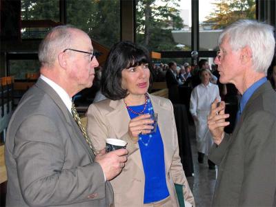 Met Hans Blix, the former UN Chief Weapons Inspector, at a reception in California last week. Blix (shown below talking with Christiane Amanpour and a Dean) proved very personable and we chatted about me possibly going to Uppsala this summer, his home town. I had no problem talking to him in Swedish, although I did choke on what the words for "Weapons of Mass Destruction" would be...